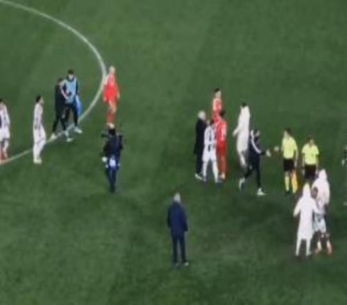 帕夫利季斯罚点时滑倒,踢飞点球,赛后难过不已,穆帅拥抱送上安慰。
