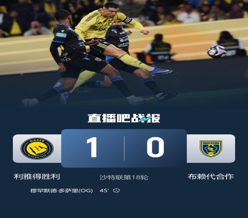 沙特联第18轮,利雅得胜利1-0战胜布赖代合作,马内造乌龙,C罗中框。