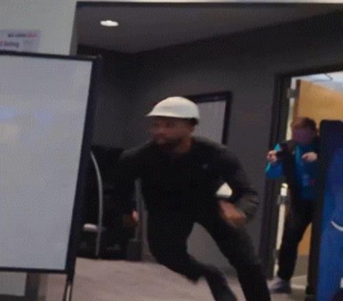 回更衣室人家直接戴了个安全帽,要跟三球二番战