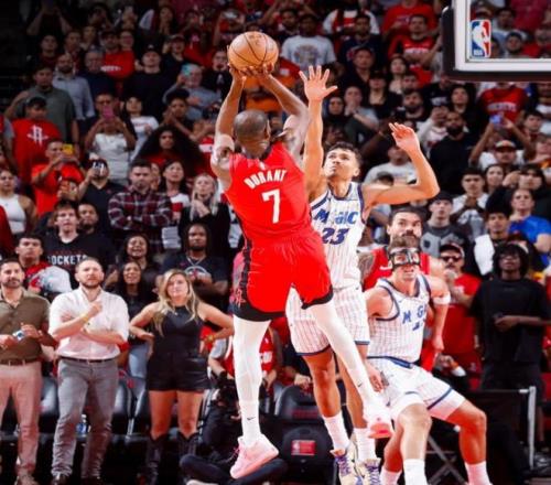 再配上本场比赛状态极佳的杜兰特、伊森和小史密斯三位射手,火箭队的申京在内线也可以得到更多一对一单打机会。申京在内线一旦被包夹,马上可以送出妙传给外线的四位射手,这也是他本场比赛能送出11次助攻的原因所在。