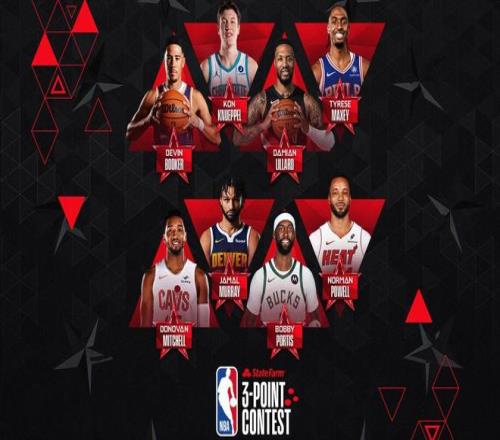 2026年洛杉矶全明星赛的三分球大赛名单已经公布,参赛球员分别是波蒂斯、贾马尔-穆雷、克努佩尔、鲍威尔、马克西、米切尔、布克和本赛季因伤无法参赛的利拉德。