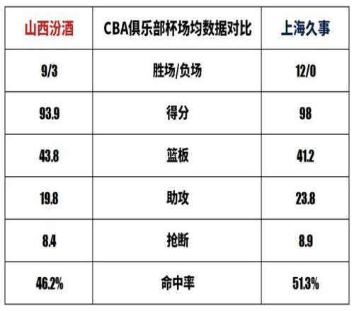 CBA俱乐部杯场均数据对比