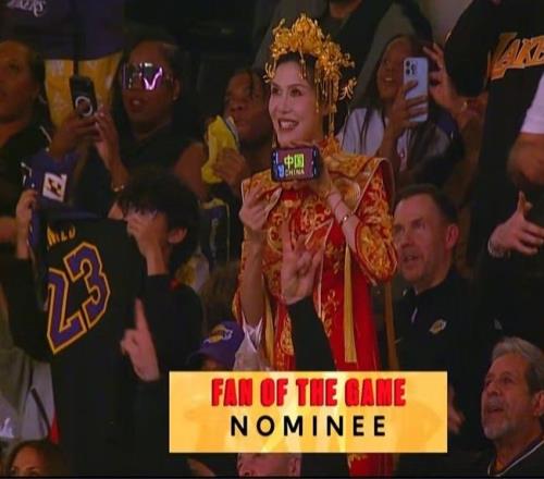 前中国女篮国手许诺现身湖人主场观战。