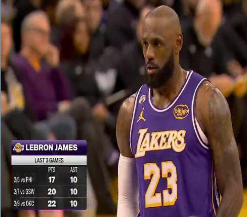 詹姆斯首节独得14分6助攻,且湖人前23分均是由他得分或助攻创造,也追平个人本赛季单节得分纪录。