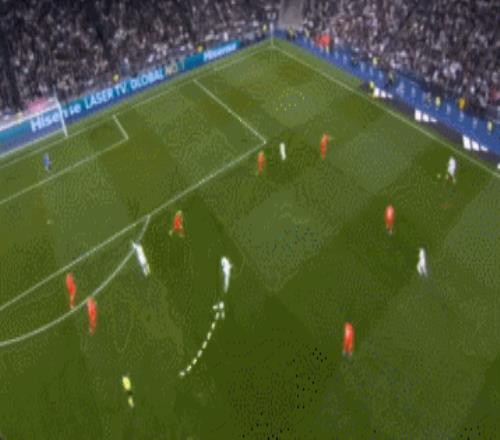 这一次的进攻,最初来自于琼阿梅尼的远射,在被封堵之后,皮球转移到侧翼,随后传中球打禁区后点。