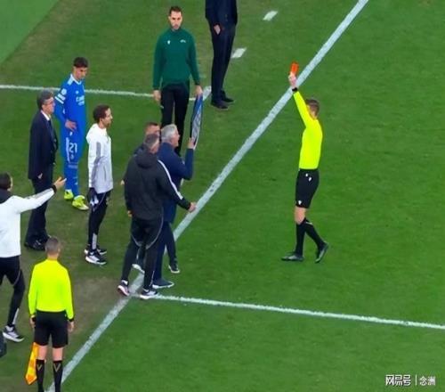 第85分钟,穆帅对裁判的一次判罚感到不满,场边狂喷裁判,结果被连续出示两张黄牌,两黄变一红被罚出场,将缺席次回合的伯纳乌一战。