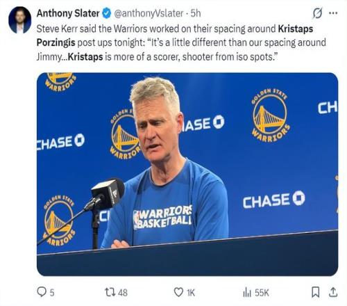波尔津吉斯到来勇士后他可以打4-5号位,他是最顶尖的空间型内线之一,波斯特+波尔津吉斯的双塔也有可能在接下来的比赛中显露。
