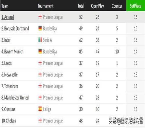 本轮赛前,国米依靠角球、任意球攻入13个联赛入球,是五大联赛所有球队中排名第四的球队,仅少于阿森纳(16)、多特蒙德(15)、拜仁(14)三队。本战依靠定位球攻入2球后,国米已是五大联赛球队里依靠定位球破门第二多的球队,也就只落后阿森纳这一支球队了。