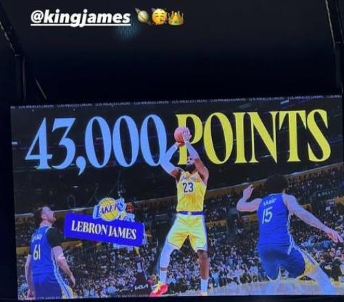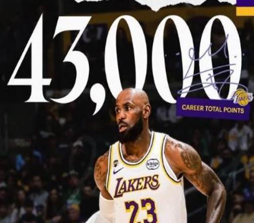 2月23日,湖人球星勒布朗-詹姆斯达成职业生涯43000分里程碑。赛后他也转发了自己得到43000分的海报,并配文:“继续前进。”