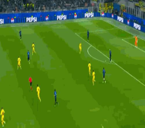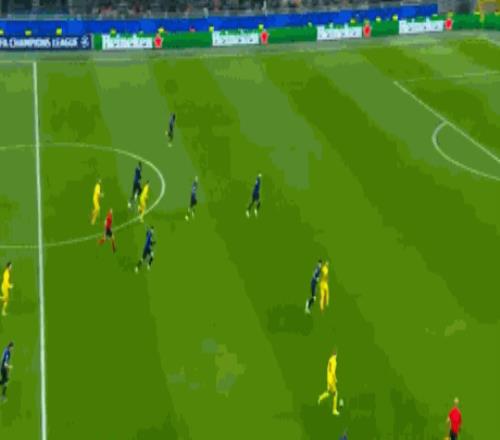 第68分钟,巴雷拉挑传,迪马尔科果断前插倒三角回敲,阿坎吉不停球低射远角却击中了立柱,错过了将功补过的机会,国米两回合下来已经击中了3次门框。大比分落后,国米的大举压上给予了对手更多的反击机会;第72分钟,海于格右路长传反击,埃夫连前插到禁区停球低射一气呵成,0:2,总比分已经来到了1:5!