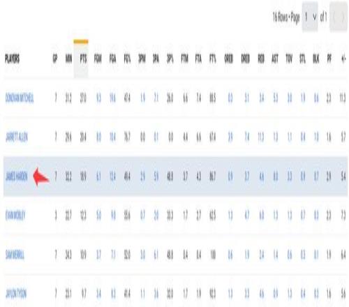 哈登加盟骑士的7场比赛6胜1负,场均32.2分钟,拿到18.9分8助攻4.6篮板0.9抢断0.7盖帽,命中率49.4%,三分命中率48.8%,罚球命中率86.7%。哈登的数据的确比在快船时下滑,可他在骑士的效率比快船高了几个档次。