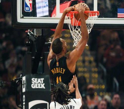 骑士的最强首发阵容在对阵篮网时展现了毁灭性威力:后场哈登+米切尔,前场韦德,内线阿伦+莫布里。首节比赛,哈登就化身传球大师,连续送出精准助攻,帮助球队瞬间拉开到18分领先。莫布里复出首秀便在内线吃饼、护框两端发挥作用,阿伦则稳稳占据禁区。进入第二节,骑士火力全开,米切尔展现无解单打能力,连续命中中距离和三分,而哈登也转为攻坚模式,几乎弹无虚发。两人轮番单打得手后,分差迅速来到20分以上,比赛悬念基本消失。下半场,哈登重回组织核心角色,通过精准传球不断喂饼内线,莫布里和阿伦在内线持续终结,骑士一度领先达到40分之多。