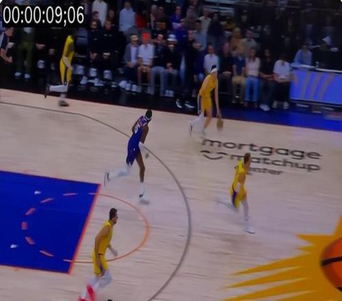 斯洛文尼亚的湖人球迷晒出了上半场詹姆斯的防守一幕,在詹姆斯防下杰伦-格林的三分出手后他就直接下快攻了,结果这个篮板被太阳拿到,詹姆斯并没有回防。