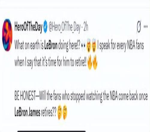 詹黑媒体:詹姆斯到底在这里干什么,我代表所有的NBA球迷向联盟建议让勒布朗退役吧!诚实一点吧,詹姆斯真的应该退役了,他离开联盟那些想看NBA的人才会回来。