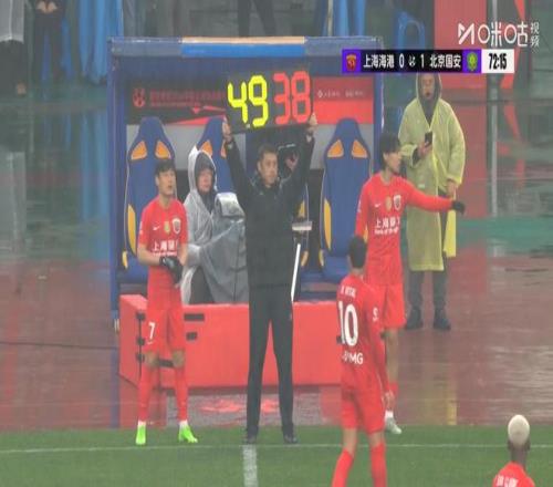 果然,比赛开始后,尽管是冒雨作战,但攻防节奏很快。从控球时间来看,上海海港略微占优,甚至杨希在右路的传中,险些让北京国安忙中出错,率先丢球。幸亏达万的解围在击中队友恩科洛洛后,球弹向自家门柱,躲过一劫。
