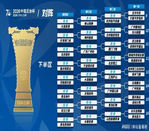 值得一提的是,本次抽签,上海海港、上海申花、成都蓉城、山东泰山和浙江队全部在上半区。下半区除了国安,并没有真正意义上的中超强队。但这并不意味着国安的赛程轻松,因为等到16强产生后,第五至第八轮的足协杯比赛将重新打乱抽签,和原来的上下半区没有任何关系。