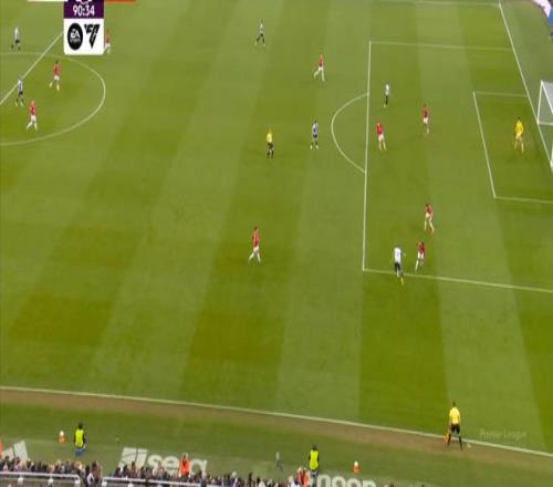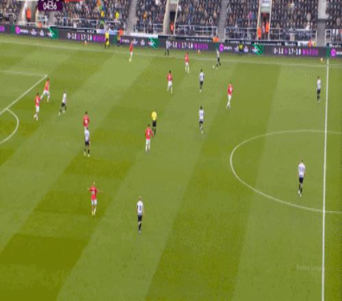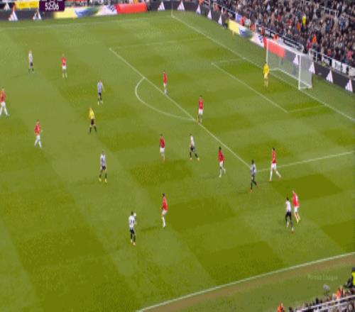 所以,当你的进攻端并不能自主成型,也无法等待对手强度大幅回落的情况下,曼联在上半场的进攻就显得有一搭没一搭了,比如球队的第一次进攻,来自前场抢断后打飞的远射: