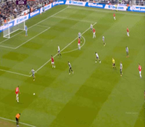除此之外,面对如今增加了全面性,从而在中路也有战术效果的戈登,马奎尔和约罗显得毫无办法,根本跟不上脚步,所以纽卡斯尔的外围优势确实很明显: