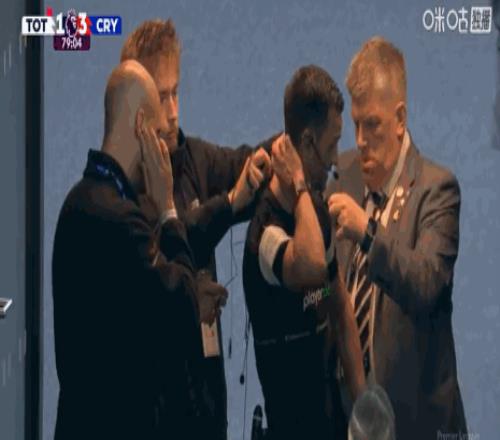 第80分钟,小插曲,主裁设备出现问题前往场边调整
