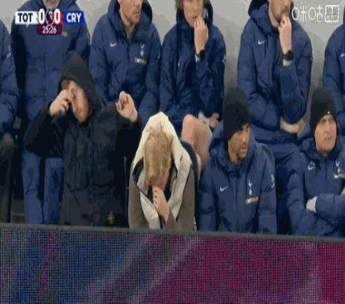 第26分钟,镜头给到场边,库卢塞夫斯基、罗梅罗替补席观战