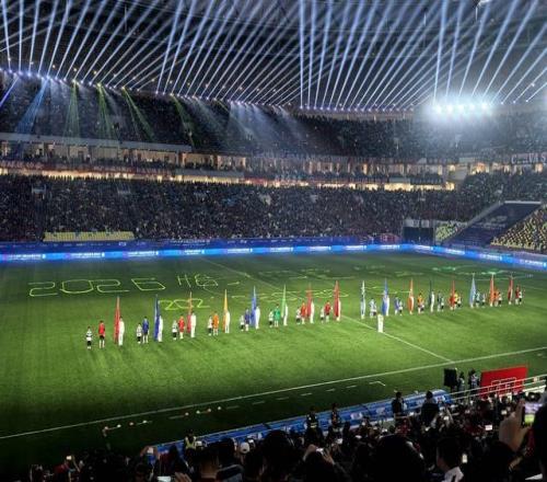 今晚的开幕式没有繁文缛节,文艺表演如同蜀锦般在草坪上织出流动的诗篇。随后,中超各队队旗入场,每一次挥动仿佛都在诉说,从甲A到中超的风雨兼程。在全场目光的聚焦下,象征着中国职业足球至高荣耀的火神杯完成了交接。那樽沉甸甸的奖杯,在灯光的映照下,反射出的是冠军的渴望,也是一代代足球人未竟的梦想。运动员与裁判员的誓言,简洁而庄重。当赛季主题曲《超越》的旋律在凤凰山上空响起,“成都雄起”声也随之响彻云霄。