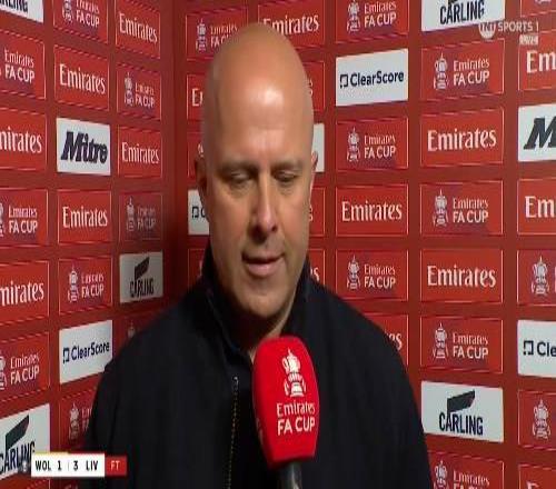 足总杯1/8决赛,利物浦客场3-1战胜狼队,利物浦主帅斯洛特赛后接受了TNT体育的采访。