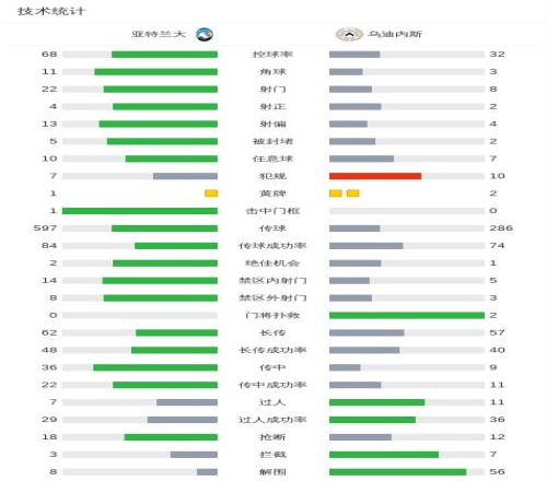 第55分钟,萨拉加射门被挡,戴维斯补射破门,亚特兰大0-2乌迪内斯