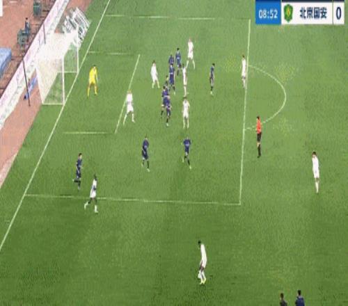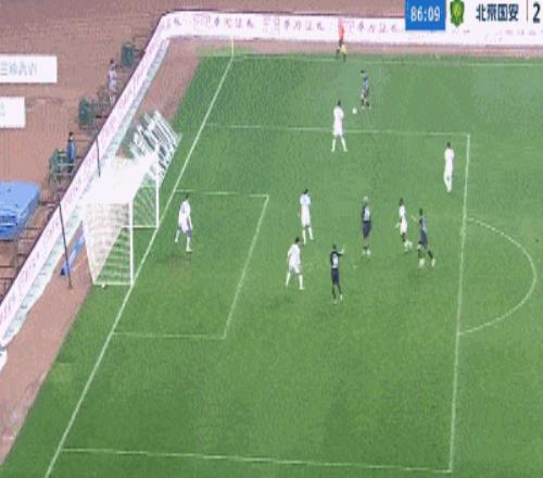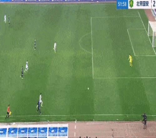 第51分钟,方镜淇超巨失误,他接队友回传犹豫,随后被王刚断球后扑倒对方,张玉宁得球吊空门得手,国安2-0领先三镇。