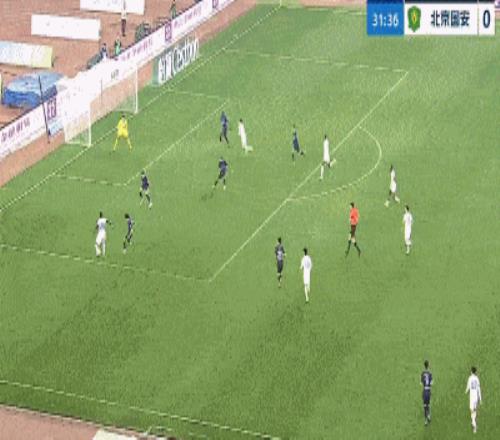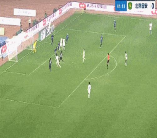 第45分钟,王刚右路底线位置无人盯防送出传中,法比奥禁区内头槌破门,国安1-0领先三镇。