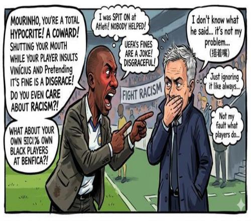 最后,他强烈呼吁加大惩罚力度:对那些在球场里乱叫、做歧视动作或在网上发仇恨言论的球迷,必须终身禁赛!球员如果因为这事被调查,俱乐部期间就该直接停发工资。他还顺便吐槽了欧足联的处理方式:“有些案子欧足联就罚点挠痒痒的钱,简直丢人现眼!”