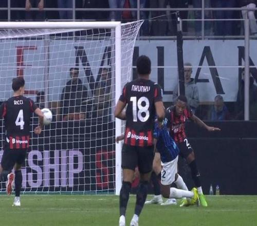 当时比分落后的国米发动最后的进攻,邓弗里斯的停球直接击中了禁区内的米兰中场萨穆埃莱-里奇的手臂。虽然国米球员当即示意里奇手球,但主裁判没有予以任何判罚,VAR也没有对这个瞬间进行介入。