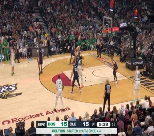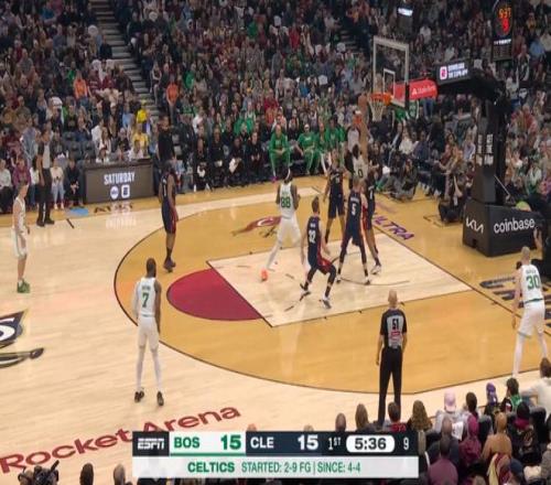 第一节结束时,凯尔特人已经以35-26领先,第二节单节,凯尔特人又打了骑士一波21-10,将分差扩大到了20分。