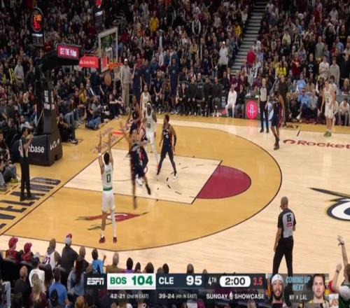 虽说半场就领先了20分,但骑士毕竟是骑士,在米切尔+哈登+莫布利带领下,第四节一度将分差缩小到个位数,然后还是塔图姆,连拿5分锁定胜局: