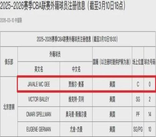 本赛季第二阶段开打前,北京队压哨为麦基完成了注册,意味着即日起就能出战CBA,有望本周三主场对阵联盟垫底的四川队完成首秀。