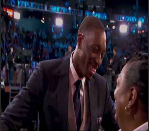 而场外的阿德巴约,也完美地继承了母亲的善良。