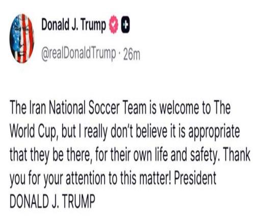 首先引爆舆论的是,美国总统特朗普的一番争议言论。他在个人社交媒体上,公开谈到伊朗队参加世界杯的问题。他表示:“欢迎伊朗队参加世界杯,但出于对他们自身生命安全的考虑,我真的认为他们不适合出现在世界杯。”