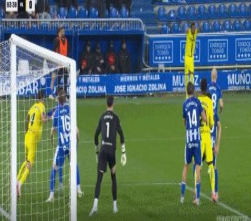 第40分钟,拉法-马林头球解围变乌龙,阿拉维斯1-0比利亚雷亚尔