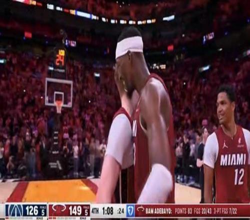 这半场热巴投篮命中率极高,三分和罚球都手感火热,充分展现了作为内线球员罕见的全面进攻能力。热火带着14分优势进入下半场,而奇才队似乎也默许了这种局面,防守强度明显不足,给了阿德巴约更多出手空间。第三节,热火继续扩大优势,比分来到77-61,阿德巴约的三节得分已达到惊人的60分。到了末节,热火教练组显然明白这是一个历史性时刻:球队核心得分手正朝着前所未有的高度前进,而奇才的防守又无力阻挡。于是,他们选择让阿德巴约继续留在场上“刷分”。从70分到77分,再到最后锁定83分,整个过程如行云流水。