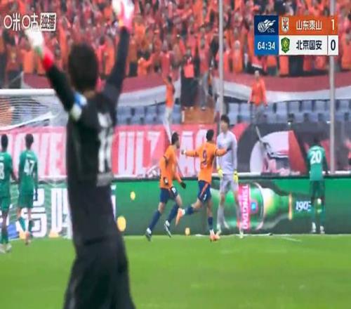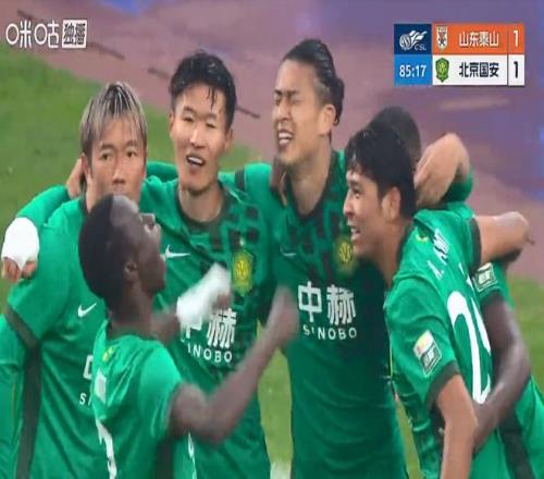 第49分钟,山东泰山先破门,谢文能的小角度怒射进球打破场上僵局。之后北京国安不断反扑都没能进球。比赛踢到第86分钟时北京国安那边也收获喜悦了!张玉宁趁慌乱中在禁区门前抢点捅射,把球蹭进山东泰山球门。1比1,客场把比分追平。然后才高兴不到1分钟,山东泰山那边立即还以颜色,克雷桑接到任意球后头球一甩,张健智扑球来不及,眼睁睁地看着皮球滚进自家球门。