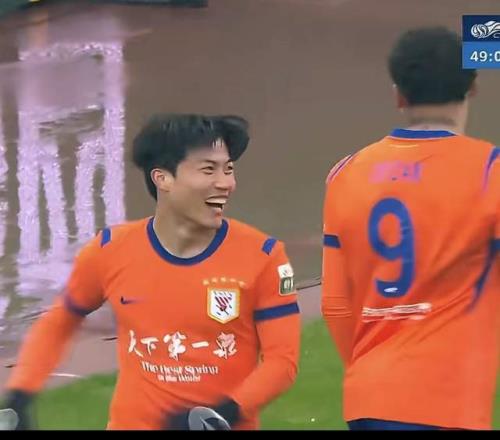 比赛来到下半场,泰山队立刻换人调整:彭啸出战换下高准翼。第49分钟,泰山队进球了:国安的后防线已经基本就位,但是泰山队球员三传两导将球给到右路的谢文能,后者劲射破门!