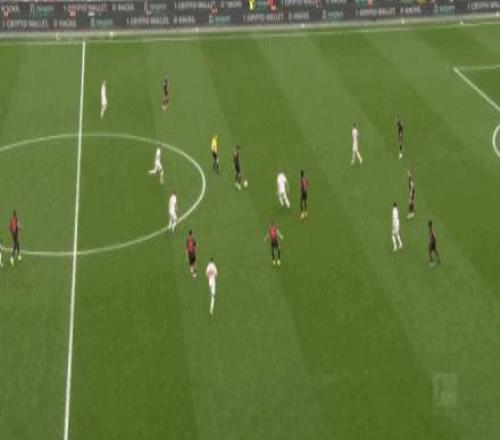 第90+7分钟,体毛级越位!半自动越位系统显示霍夫曼绝杀球就差一点
