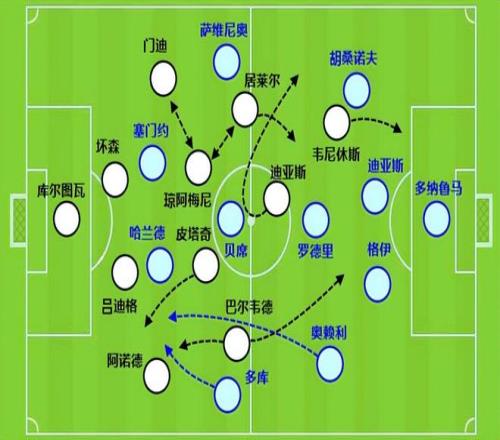他俩是前场2个拿球点,再加上左前卫居莱尔的技术能力,保证攻防转换时不轻易丢球,同时吸引防守力量向他们包围,也给了右路巴尔韦德更多的前插机会。