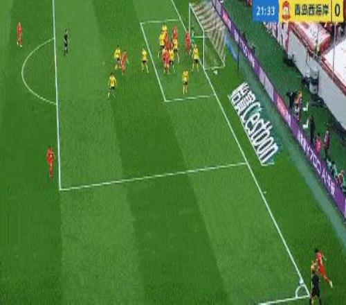 第32分钟,青岛西海岸险些打破僵局,戴维森左路反击内切兜射,皮球击中立柱弹出。