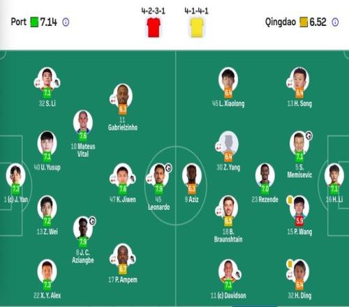 青岛西海岸首发(5-4-1)