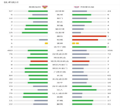北京时间3月16日德国足球顶级联赛第26轮,斯图加特主场对阵RB莱比锡。下半场昂达夫打入制胜球。最终比分斯图加特 1-0 RB莱比锡。
