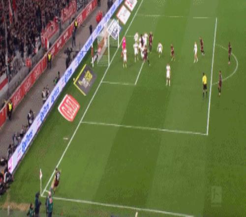 第90+2分钟,莱比锡左路起球,奥尔班头球击中立柱