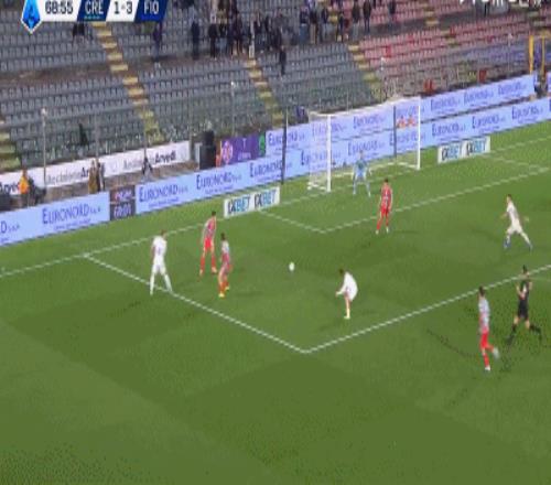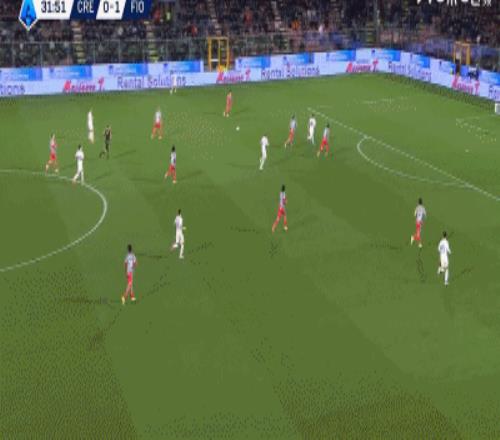 第57分钟,扳回一城,奥克雷克门前推射破门,克雷莫内塞1-3佛罗伦萨