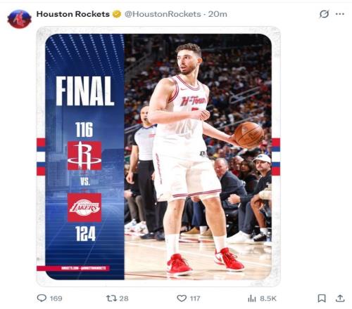 北京时间3月19日,火箭116-124不敌湖人吞下二连败,火箭掉到西部第五。申京的复出的确让火箭的进攻流畅了不少,他在第三节的5次助攻是火箭反超的关键,只可惜在末节决胜时刻出现了低级失误,全场比赛申京27分10助攻4篮板也算尽力了,他登上火箭海报。
