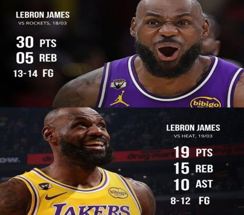 短短24小时,14中13拿30分5篮板+12中8拿19分15篮板10助攻,两场运动战26中21,命中率超过80%,外界还说勒布朗不行?他复出的五场比赛湖人都赢球了。