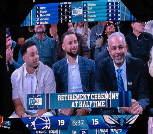 比赛中场休息时,黄蜂队为戴尔-库里举办了球衣退役仪式,后者的30号球衣在黄蜂主场升空。